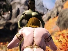Muscular futanari orcs fuck Juicy Curvy Warrior